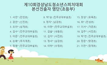 미래교육문화진흥원09. 02<제10회 경상남도청소년스피치대회> 2025년 8월 30일 창원문성대학교 9호관 컨벤션홀에서 제10회 경상남도청소년스피치대회 개최!! 수상자 여러분 모두 축하합니다!! 공정한 심사를 위해 애써주신 심사위원님들과 원활한 진행을 위해 도와주신 사회자님과 자원봉사자들 그리고 자신의 실력을 맘껏 발휘해 준 참가자들 모두 수고하셨고 감사합니다!! 사단법인 미래교육문화진흥원은 본대회가 청소년들의 인성함양과 미래인재로서의 자질을 갖추고 자신감 향상의 기회의 장이 되도록 노력합니다.