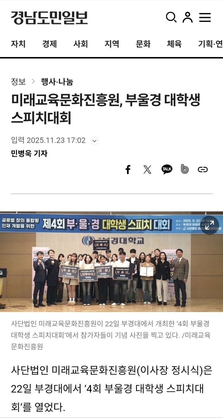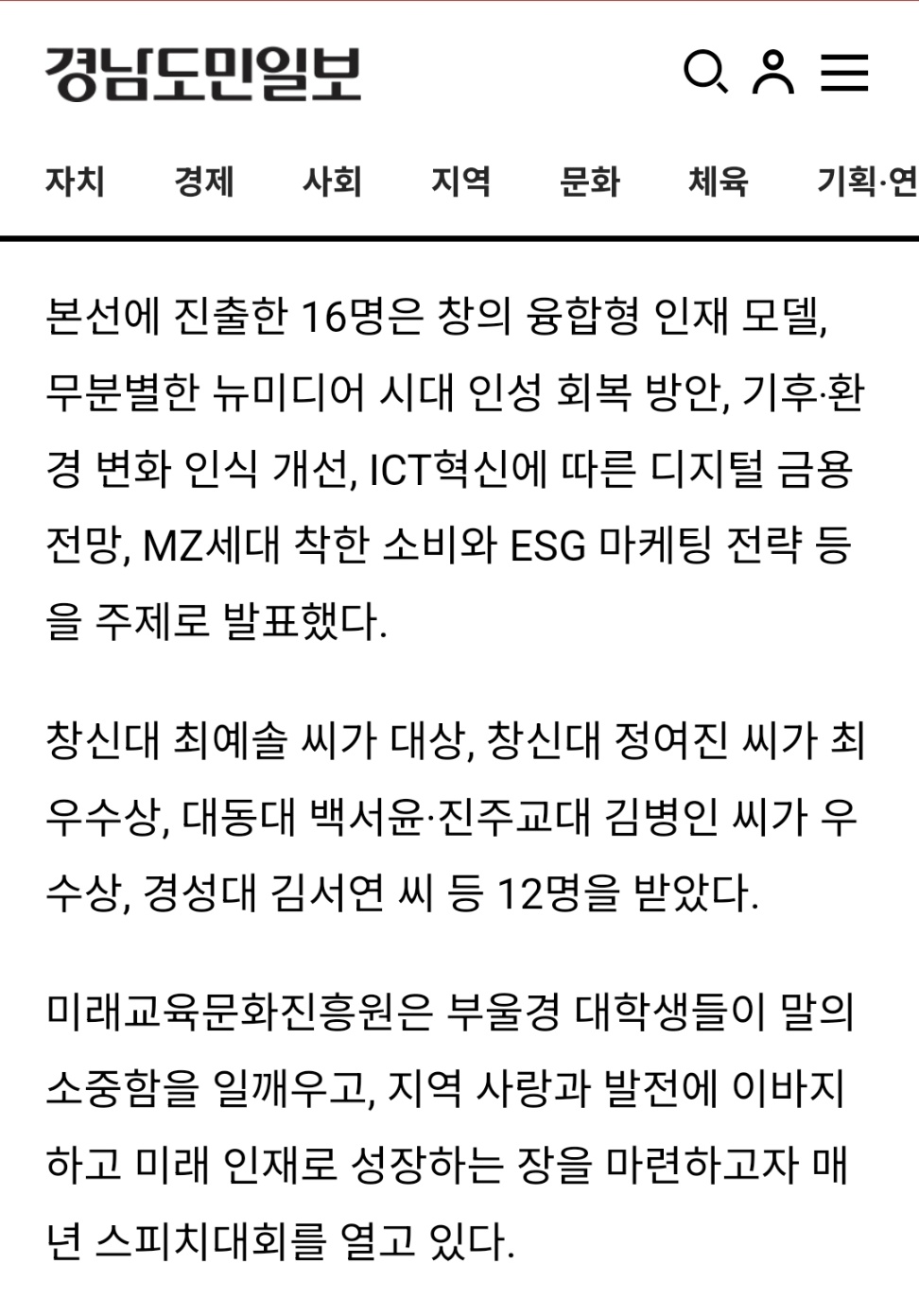 제3회경상남도청소년스피치대회 보도(경남도민일보, 경남연합일보, 국제신문)